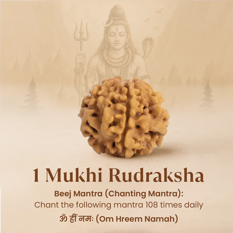 Nepal Origin 1 Mukhi Rudraksha is one of the rarest and most powerful Rudraksha beads. It represents Lord Shiva and is believed to bring peace, focus, and spiritual growth. This sacred bead helps in meditation, removes negative energy, and supports the path to moksha (liberation). It is ideal for those seeking inner strength and clarity.