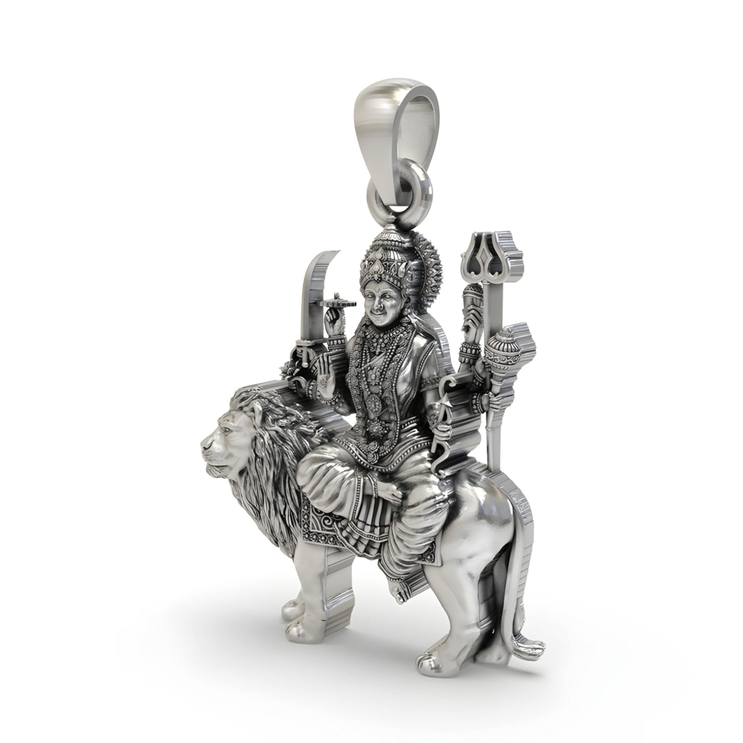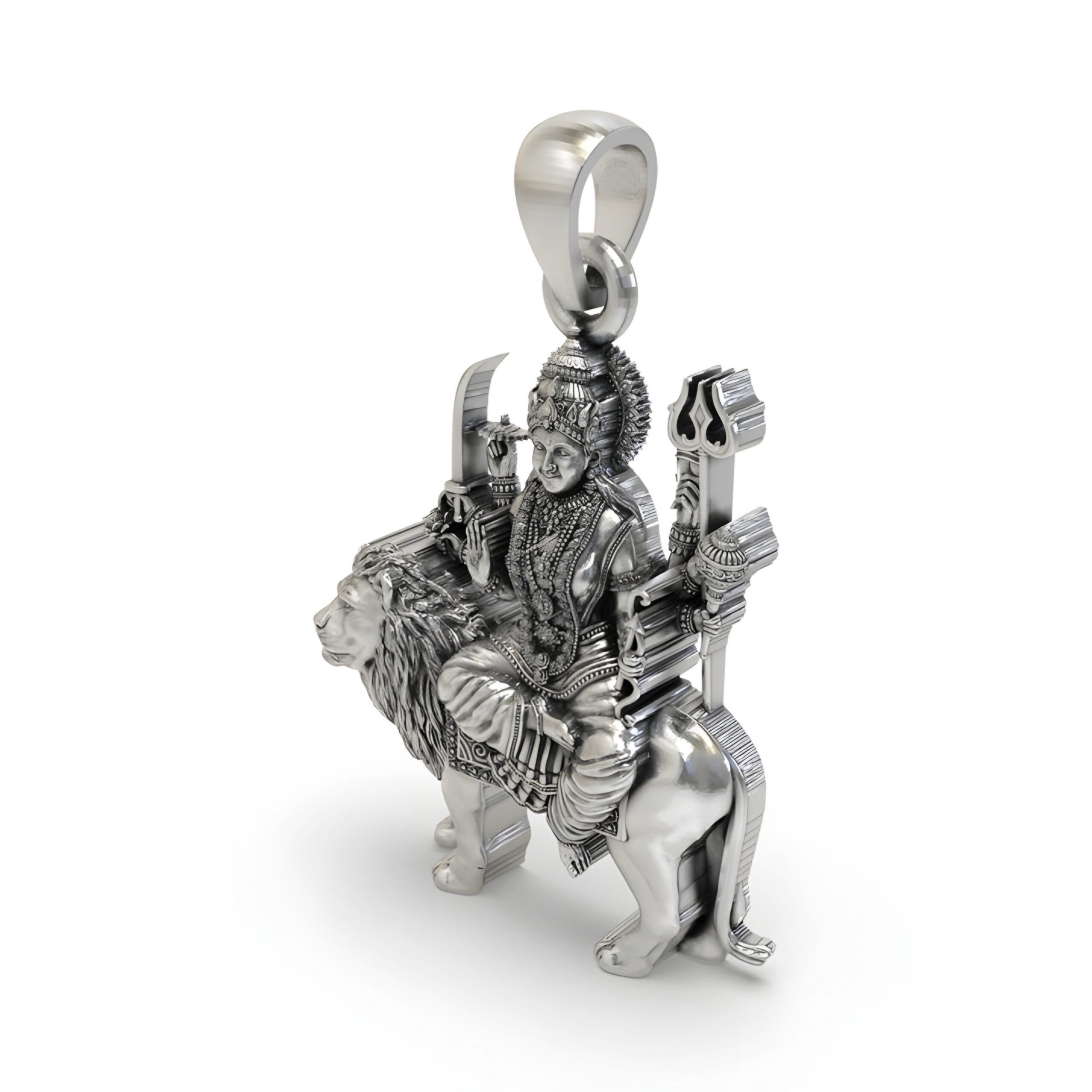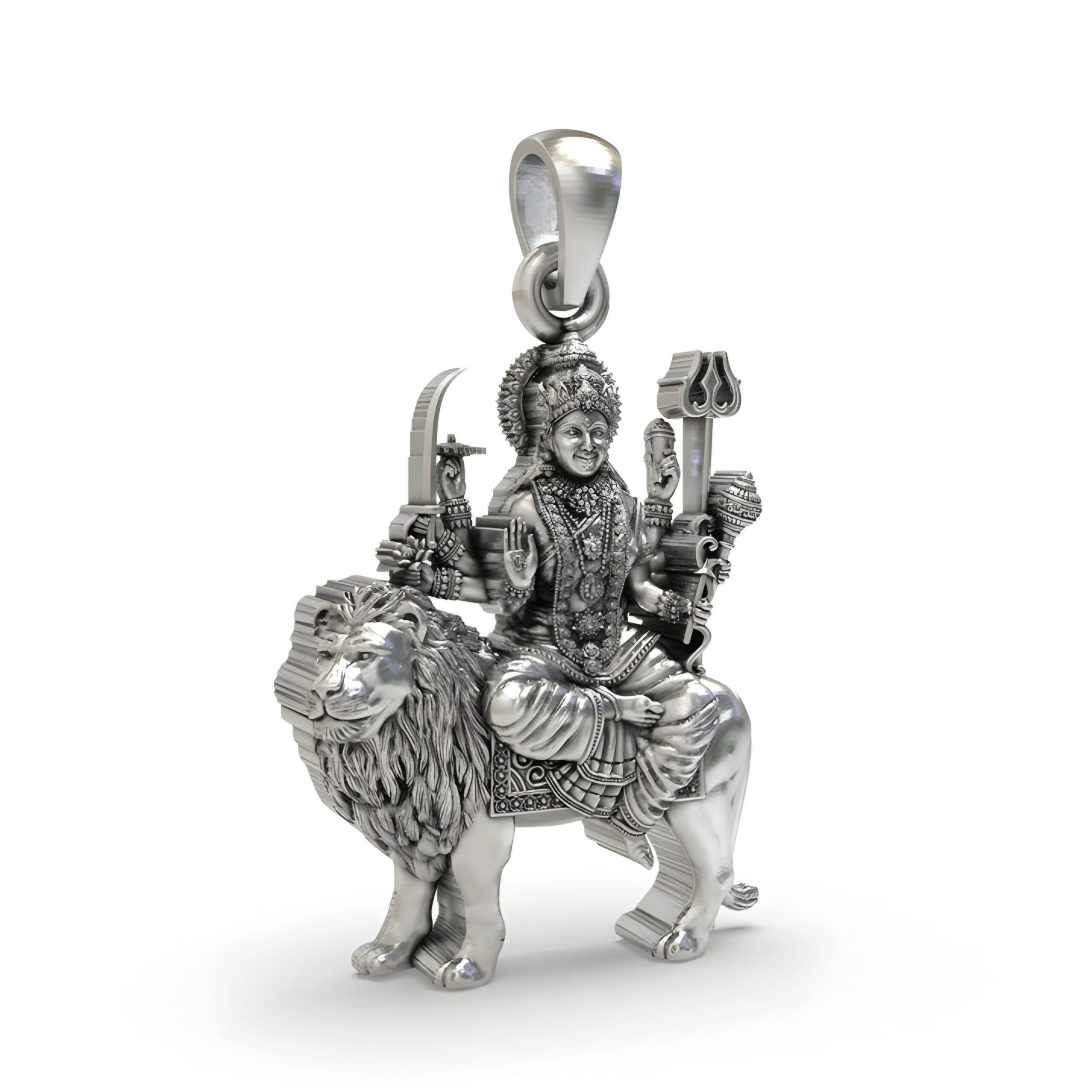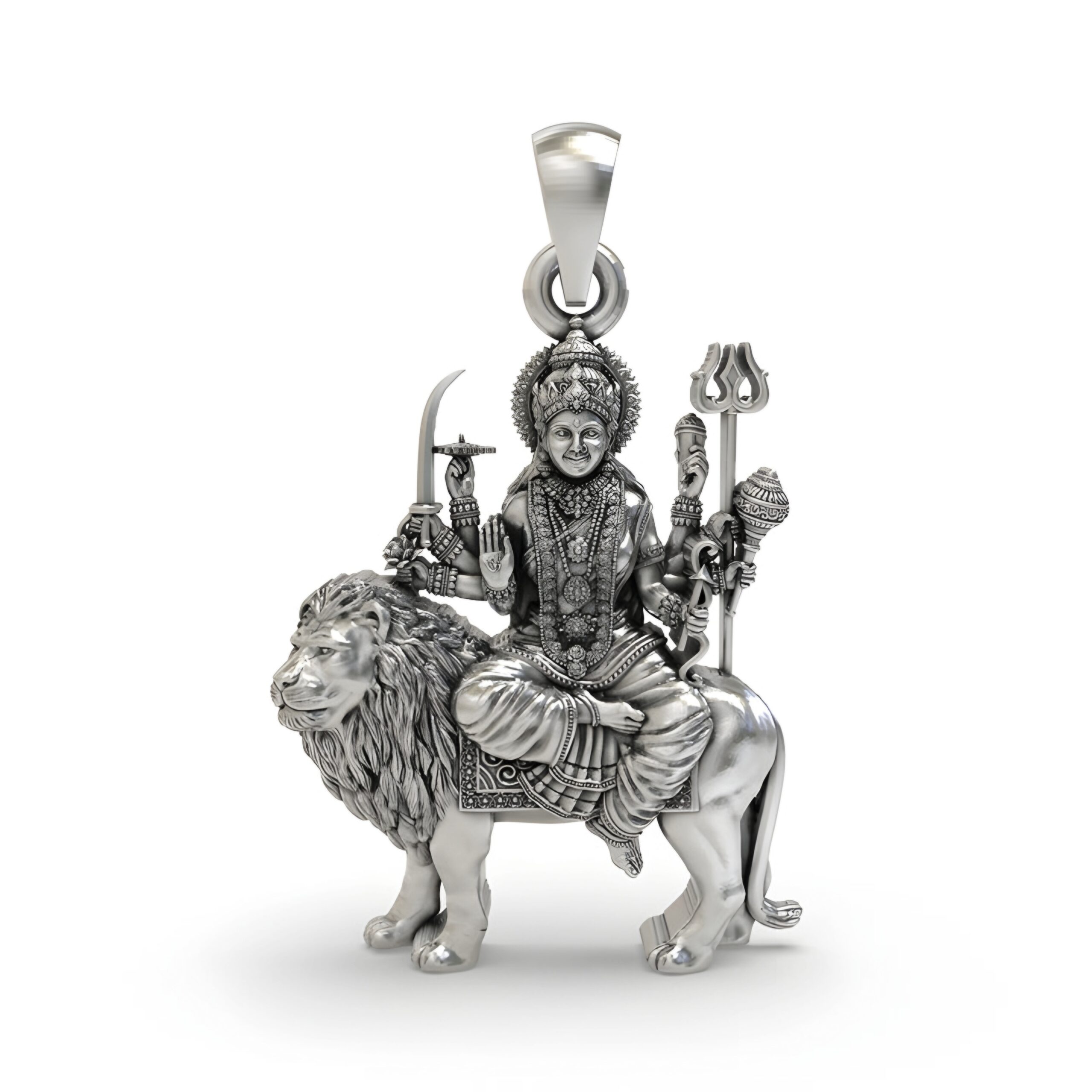Invoke courage and grace with this 925 Sterling Silver Durga Maa Pendant, crafted in temple-style detailing and an elegant oxidized finish. Seated on Her lion (Simhavahini/Sherawali), the goddess symbolizes strength, protection, and victory over negativity. Lightweight yet substantial, it’s perfect for daily wear, prayer, and festive gifting.