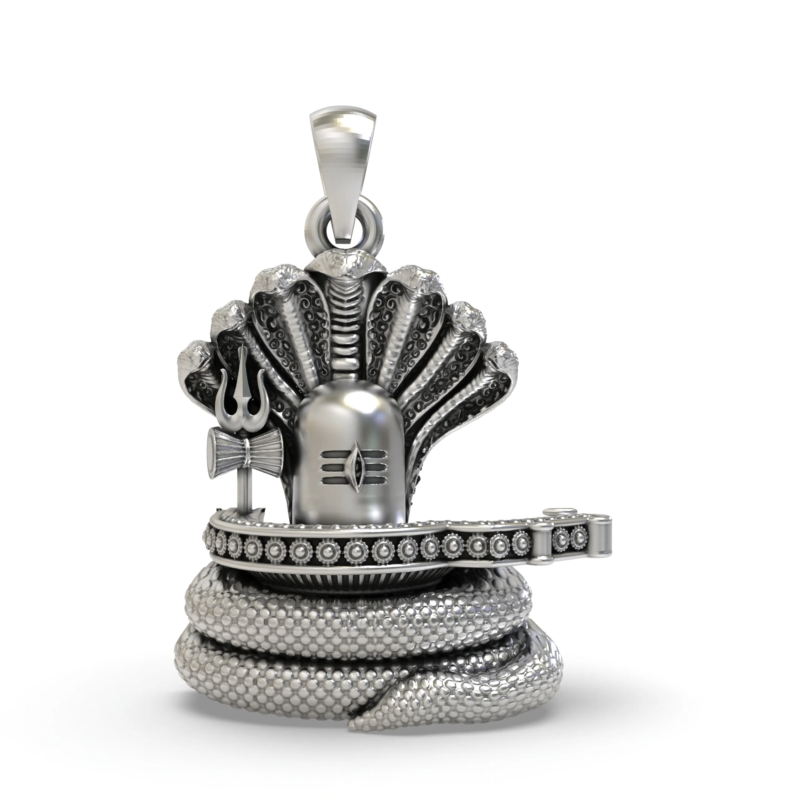 This pendant isn’t just jewelry — it’s a powerful spiritual amulet. The presence of the snake coiled around the Shiva Lingam represents the union of Shiva’s infinite consciousness with the awakening life force that lies dormant in every soul.